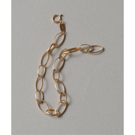 楕円形のコマを連ねたしなやかなチェーンが、手元に軽やかな抜け感を与え、ほどよい存在感を放ちます。