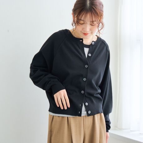 ボタンを前にすればカーディガン、後ろにすればクルーネックトップスとして着用可能。