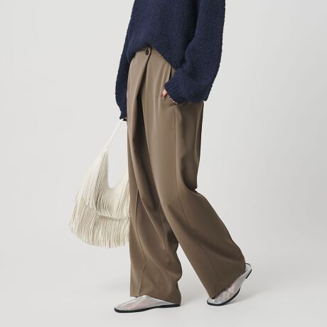 とろみのある上品な素材を活かして、ウエストはタックなしですっきりとさせ、裾にかけてほどよいゆとりを持たせたシルエット。