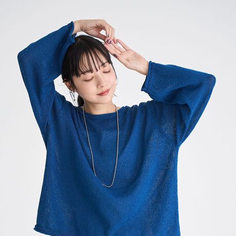 透け感のある編地を活かし、インナーとのレイヤードでコーディネートに奥行きをプラスしてくれます。