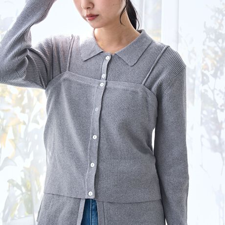 同素材の襟付きカーディガンと合わせれば、今年らしいスタイリングが完成します。