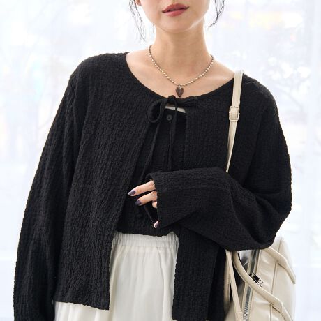 素材感:ポコポコとした表情のある素材が可愛いポイント。ほどよい透け感があり、夏場でも取り入れやすそうな印象です。