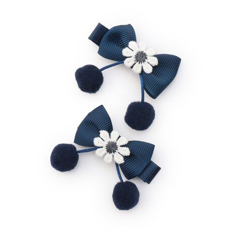 [型番:2161424]グログランテープのリボンに、花モチーフとボン天をあしらったヘアクリップ。お出掛けにも、普段使いにも合わせやすく、コーディネートのワンポイントになります。