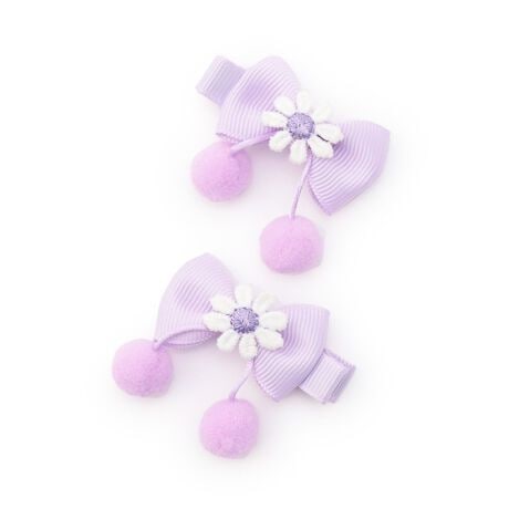 [型番:2161424]グログランテープのリボンに、花モチーフとボン天をあしらったヘアクリップ。お出掛けにも、普段使いにも合わせやすく、コーディネートのワンポイントになります。