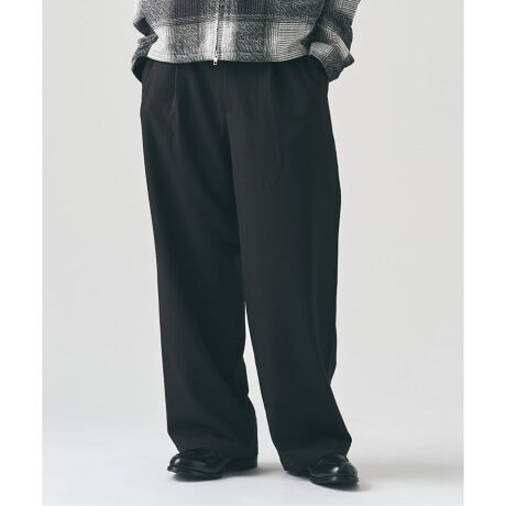 クリアな表情が特徴の、きれいめTR素材を使用したワイドイージーパンツ。