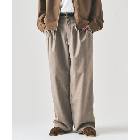クリアな表情が特徴の、きれいめTR素材を使用したワイドイージーパンツ。