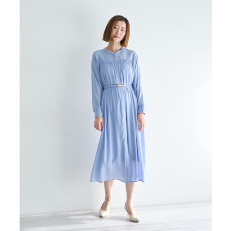 ギャザーをたっぷり施しながらも広がりすぎず、付属のベルトでスタイルにメリハリを演出。