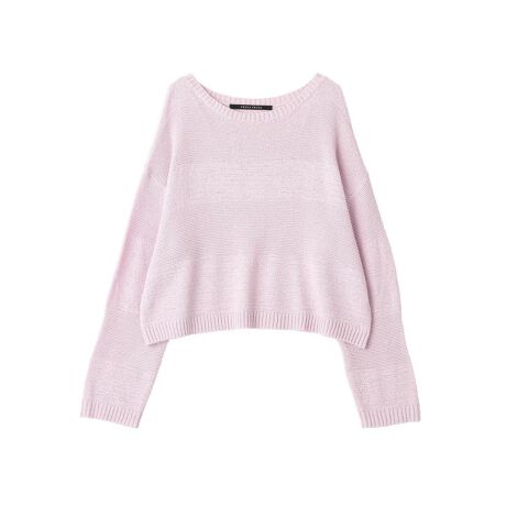 テープヤーンならではのさらりとした編み地が、見た目にも着心地にも軽やかさを添えるニット。