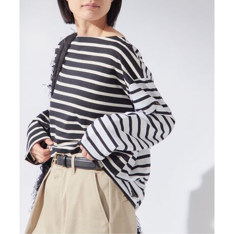 ゆったりとした抜け感のあるボディに、クレイジーボーダーを合わせたL'ESSAGEだけの特別なアイテム。