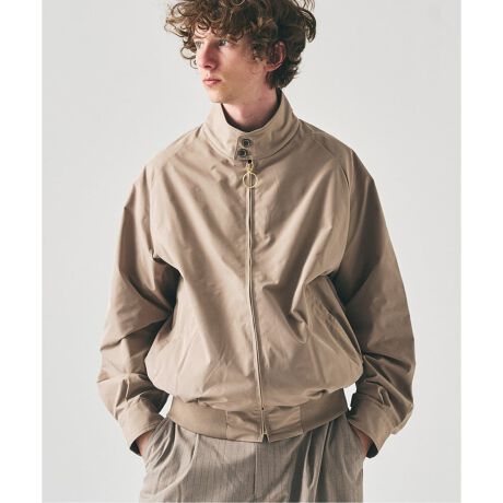 高級感のあるポリエステルツイル素材を使用した、ハリントンブルゾン。
