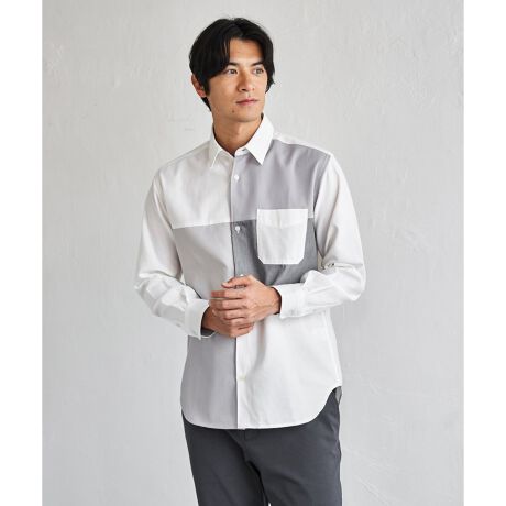 [型番:11510714]ikkaで人気のブロックスシリーズから、上品なオックス素材を使用した切り替えデザインシャツが登場。シンプルな中に別生地のアクセントを効かせ、落ち着いたスタイルにさりげない個性を添えます。いつものシャツスタイルに変化をもたらす一枚。