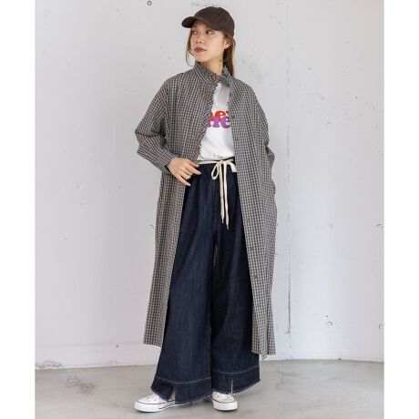 衿から前開きにかけてフリルをあしらった、華やかな印象のシャツワンピース。1枚でさらっと着るのはもちろん、ベストやニット、スウェットを重ねたレイヤードスタイルもおすすめです。両サイドにポケット付き。