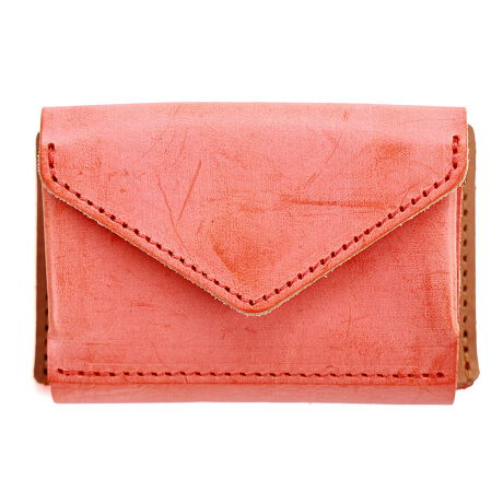 デジタル決済やモバイル決済がスタンダードになりつつあるこれからの時代に合わせ、無駄な機能をそぎ落とし極限まで小型に進化したミニマルな財布です。外側のマチ付きフラップポケットは小銭入れになっており、500円玉1枚/100円玉5枚/50円玉2枚/10円玉2枚/5円玉2枚/1円玉5枚程度が収まる設定になっています。本体を開くと、中央にはカードポケットがついており、まとめて6枚までのカードが収納できます。最初はふんわり広がったポケットですが、カードを入れることで革がなじみカードの形に変化していきます。カード入れをめくった裏側のスペースには、まっすぐに伸ばした状態のお札が10枚程度収まります。札の端はカード入れ上部分の革の下にくぐらせて収納します。外側にはもう一ヵ所のカード入れがついており、ICカードなどを入れておくと財布に入れたままタッチができるようになっています。