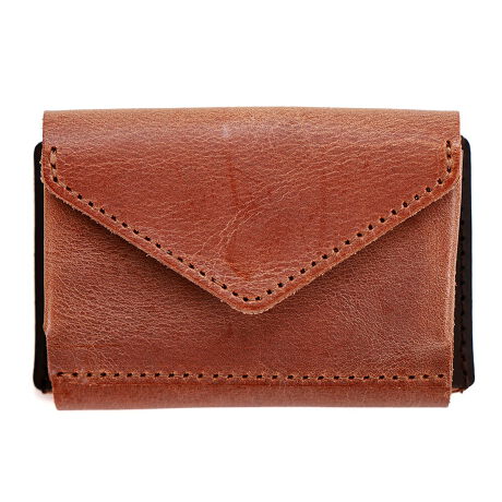 デジタル決済やモバイル決済がスタンダードになりつつあるこれからの時代に合わせ、無駄な機能をそぎ落とし極限まで小型に進化したミニマルな財布です。外側のマチ付きフラップポケットは小銭入れになっており、500円玉1枚/100円玉5枚/50円玉2枚/10円玉2枚/5円玉2枚/1円玉5枚程度が収まる設定になっています。本体を開くと、中央にはカードポケットがついており、まとめて6枚までのカードが収納できます。最初はふんわり広がったポケットですが、カードを入れることで革がなじみカードの形に変化していきます。カード入れをめくった裏側のスペースには、まっすぐに伸ばした状態のお札が10枚程度収まります。札の端はカード入れ上部分の革の下にくぐらせて収納します。外側にはもう一ヵ所のカード入れがついており、ICカードなどを入れておくと財布に入れたままタッチができるようになっています。