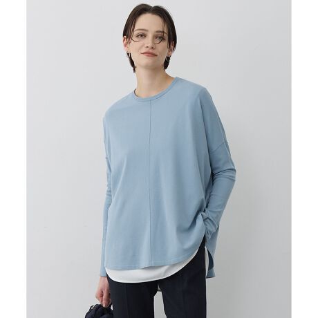 ■デザインオーバーシルエットのボディーと細身の袖とのメリハリのあるシルエットで、『Tシャツ以上セーター未満』の着心地の良いプルオーバーです。薄手ながら、適度にハリコシ感も併せ持っているので、体のラインを拾いにくく軽やかに快適に着ていただけます。シンプルながらフォルムやシルエットにこだわっているので、一枚でもサマ見えすること間違いなし。落ち感もあり、ジャケットのインナーとしてもお使いいただけます。