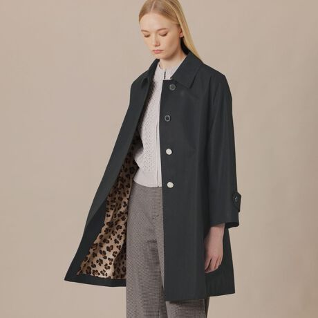 MACKINTOSH LONDONの定番モデル「ROSLEY/ロズリー」です。ステンカラーとドロップした肩、裾に向けて広がる優雅なシルエットはインナーやボトムを選ばず、どなたが着てもサマになるコートです。肩を少しコンパクトにリニューアルして、よりAラインに広がるシルエットに仕上げました。総裏地付き、ブラック(#09)のみ地衿と裏地(身頃)がレオパード柄です。同素材のコート、(品番:G5A11710)、(品番:G5A12710)、(品番:G5A17710)もご用意しております。