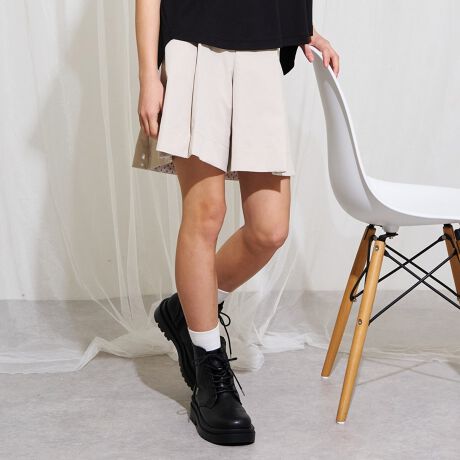 タックで自然な立体感と美しいシルエットを実現したキュロットです。