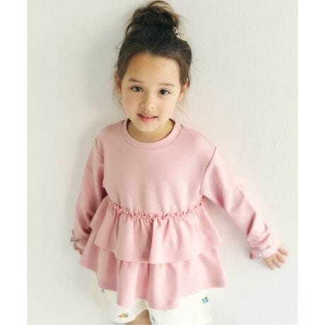 apres les cours(アプレレクール)の長袖Tシャツ「袖リボンティアードペプラムトップス」は、ナチュラルなスタイルにさりげなくデザインをプラスしたおしゃれアイテム*
