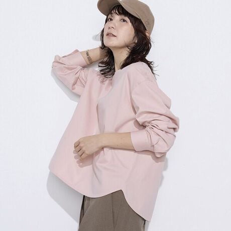 前後差を付けたシャツテイルとカフス仕様にすることで、きちんとしたブラウスに仕立てています。