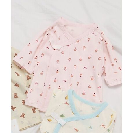 [型番:V237036]apres les cours(アプレレクール)の肌着「ベビー半袖フライス短肌着 総柄」は、やさしい色合いとデザインでベビーギフトや出産祝いにもおすすめ*#apreslescours【サイズ情報】50-60:身丈30.5 身幅22 裄丈(7分丈)23.5 袖口幅860-70:身丈32.5 身幅23 裄丈(7分丈)26.5 袖口幅8.5