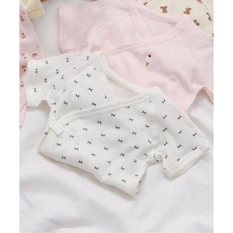 apres les cours(アプレレクール)の肌着「ベビー半袖リブボディ肌着 ワンポイント・総柄」は、やさしい色合いとデザインでベビーギフトや出産祝いにもおすすめ*