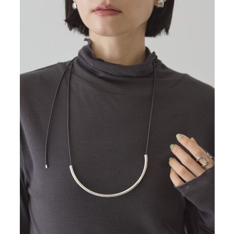 無駄を省いたデザインの中に、さりげない個性を感じさせるネックレス。ハーフパイプの緩やかなカーブが光を受けて美しく、顔まわりを明るく見せてくれます。主張しすぎないデザインなので、デイリー使いはもちろん、きちんと感が欲しいシーンにも取り入れやすいです。コード仕様で肌なじみが良く、軽やかな着用感が続きます。長さを自由に調整できるため、首元に沿わせたり、少し下げて抜け感を出したりとアレンジも楽しめます。シンプルなトップスに合わせるだけで、コーディネート全体が引き締まり、洗練された印象に仕上がります。アクセサリー選びに迷った時にも頼れる存在で、季節を問わず活躍します。※モデル着用画像は、光の当たり具合で色味が違って見える場合がございます。※お使いのモニター環境によって商品の色味が違って見える場合がございます。