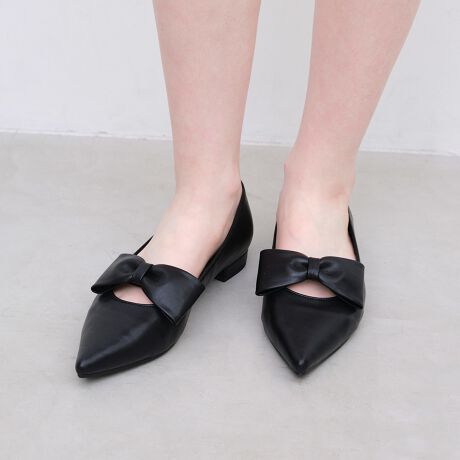 甲部分を覆うリボンデザインがポイントのフラットパンプス♪