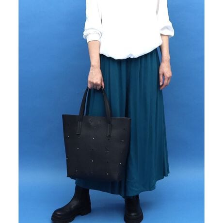 小さな星型のカットワークとスタッズが光る縦型トートバッグ