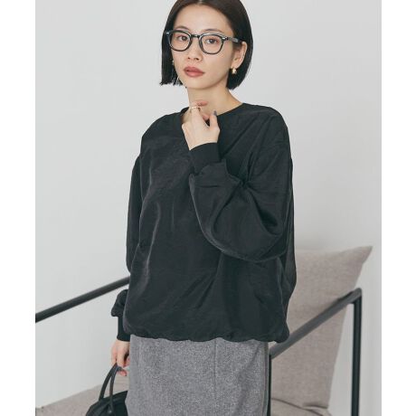 異素材のコントラストが洒落感溢れるデザインプルオーバー。スウェット素材のクルーネックフォルムに光沢感のあるオーガンジー素材を重ね、カジュアルさとフェミニンさを兼ね備えたこなれたデザインが魅力です。ゆとりのあるサイズで着心地よく、インナーにシャツを合わせた着こなしもおすすめ。スカートからスラックスまで幅広いボトムと合わせやすく、デイリーに活躍するおすすめのアイテムです。透け感[なし]
