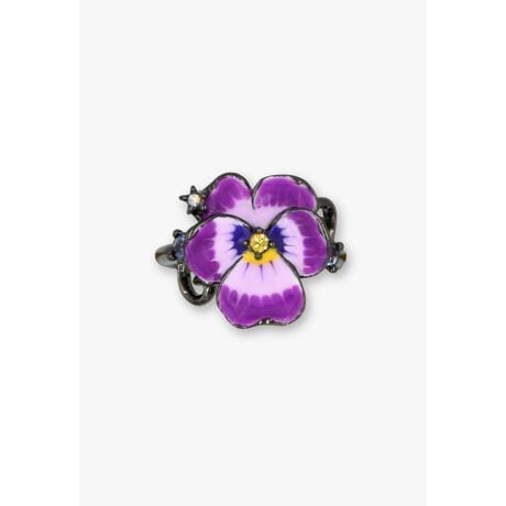 そこから摘み取ったパープルカラーのビオラを一輪あしらったリングです。