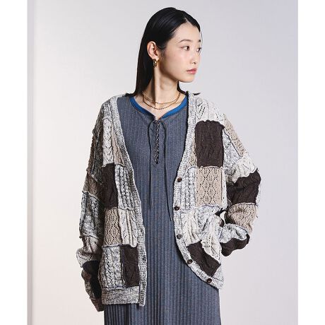 クラフト感あふれる、リメイクライクなパッチワークニットカーディガン
