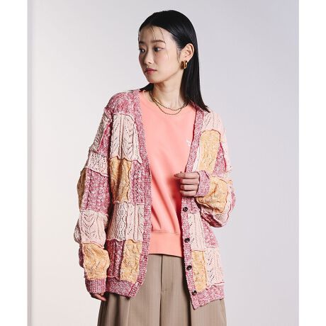 クラフト感あふれる、リメイクライクなパッチワークニットカーディガン