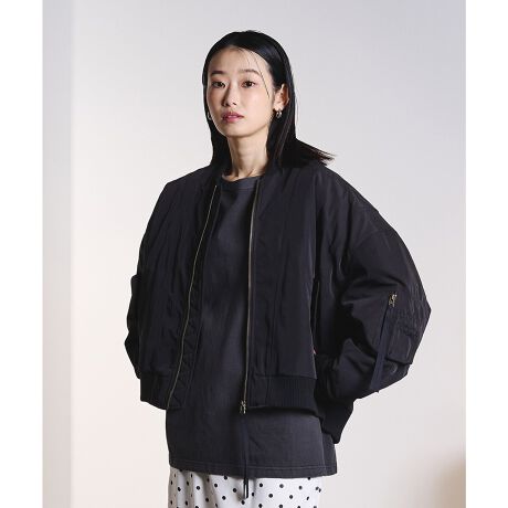 ショート丈ですが身幅にゆとりがあるので、インナーを選ばず着回ししやすいMA-1です。