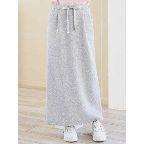 [型番:26550726614]ふんわりと軽やかな肌触りのスフレタッチの素材で仕立てられたロングスカート。すとんとしたナローシルエットで、縦のラインを強調する効果が得られます。動きやすいバックスリット入りもポイント。トップスをタックインしたメリハリのあるスタイリングがおすすめです。モデル(グレー着用)身長:165cmMサイズ着用
