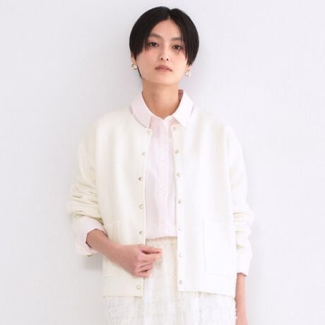 ・程よく厚みのある素材感でアウター感覚ながらも、軽さのある素材感です。