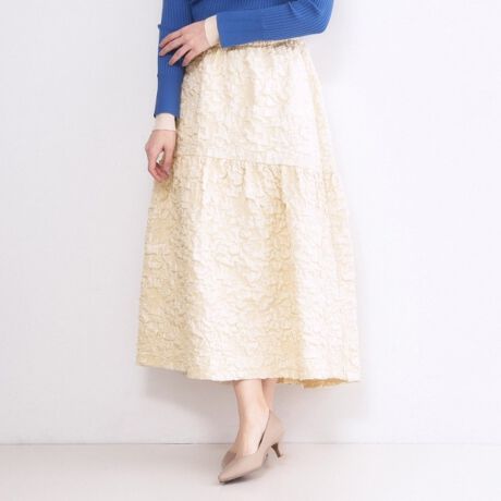 ぽこぽことした膨れジャガード素材が華やかなティアードスカート