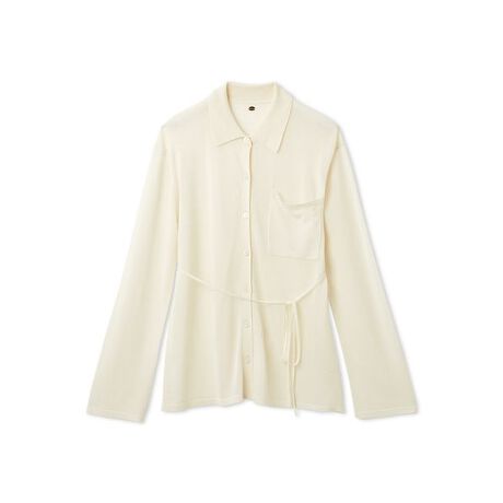柔らかな質感のシアーニット素材で作るシャツは、布帛のシャツよりエレガントに、ニットカーディガンよりトレンドライクに、スタイリングを素敵に盛り上げます。