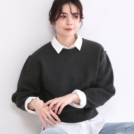 カジュアルスタイルにぴったり、スウェット見えショート丈ニットが登場!