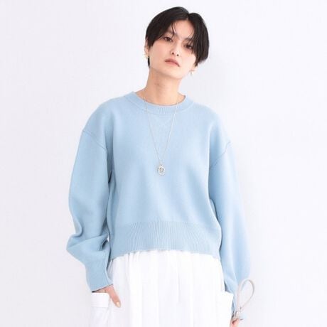 カジュアルスタイルにぴったり、スウェット見えショート丈ニットが登場!