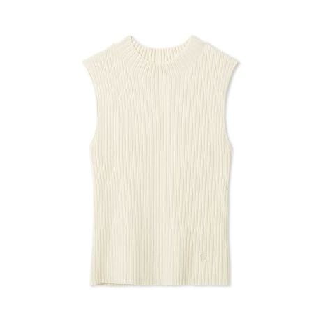ノースリニットは、編み続きのハイネックでミニマルに。