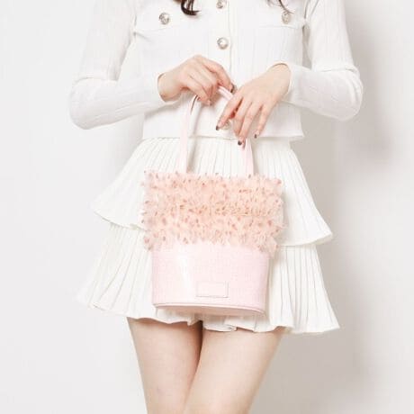 ハートのフロッキープリントが目を引く、ギャザーチュールバッグです。