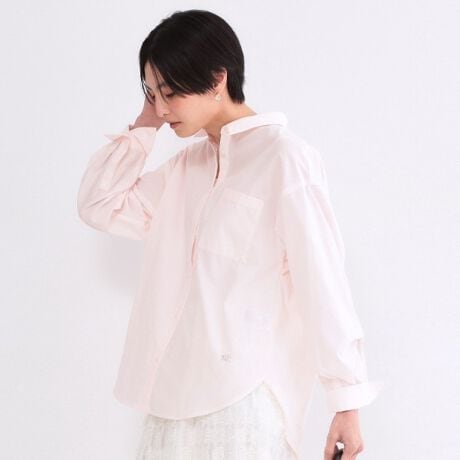 ・前後差があるシャツテールは、ボトムスにインもアウトもしやすい丈感が◎。
