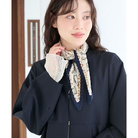 全体にプリーツ加工を施し、上品な見た目に仕上げたスカーフ