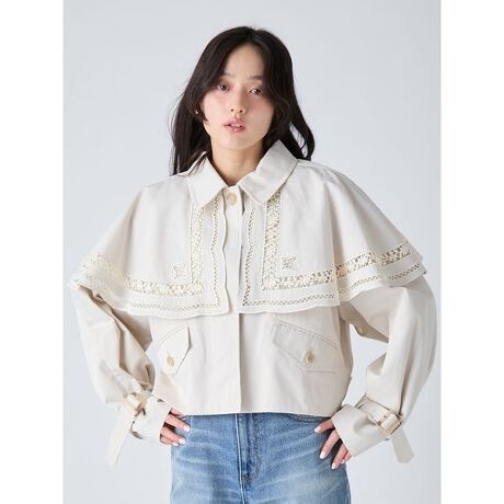 <b>【春らしい華やかな刺繍が映える2WAYケープショートトレンチ】</b>