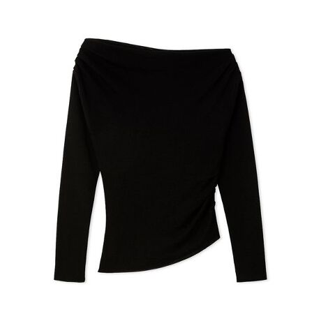 タックで表現したアシンメトリーなドレープがモードに映えるニットトップス。