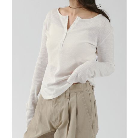 ヘンリーネック スラブリブ 長袖 シアー トップス