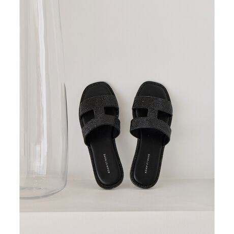 きらびやかで繊細なラインストーンを贅沢に使用した、夏の日差しをきらきらと反射させて足元を彩ってくれる着脱しやすいフラットサンダル。