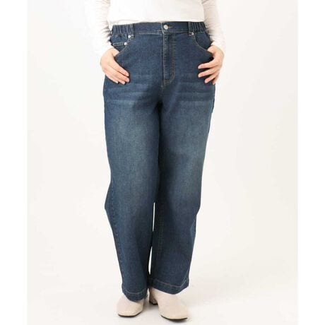 ストレッチ入りで楽な穿き心地のワイドストレートデニムパンツ。