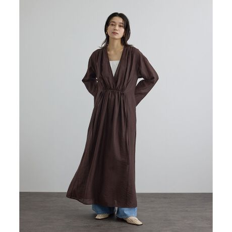 肩からウエストへ流れるギャザーが印象的なサブリエワンピース。