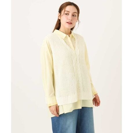 テープヤーンニットベスト(品番OLFCD02089)を合わせたスタイリングがおすすめ。